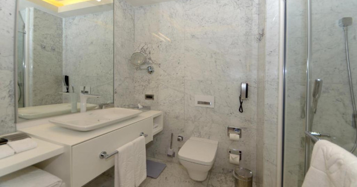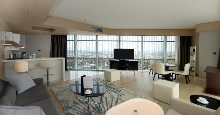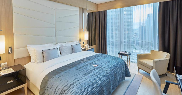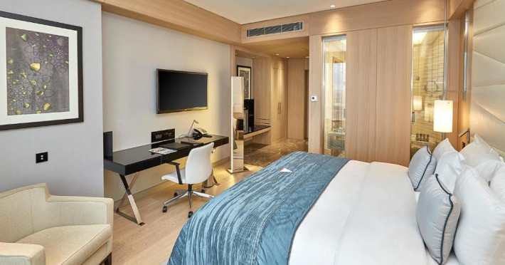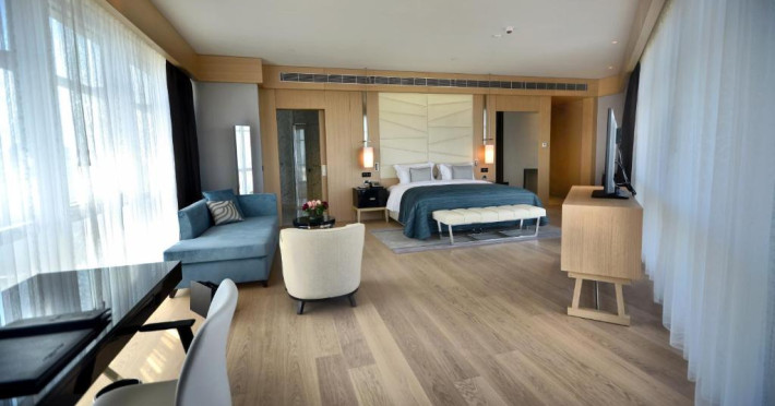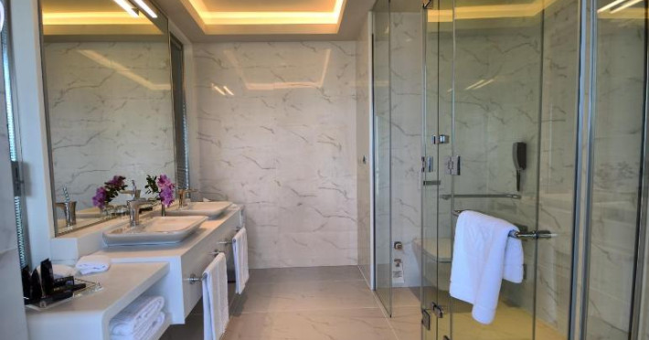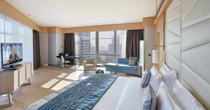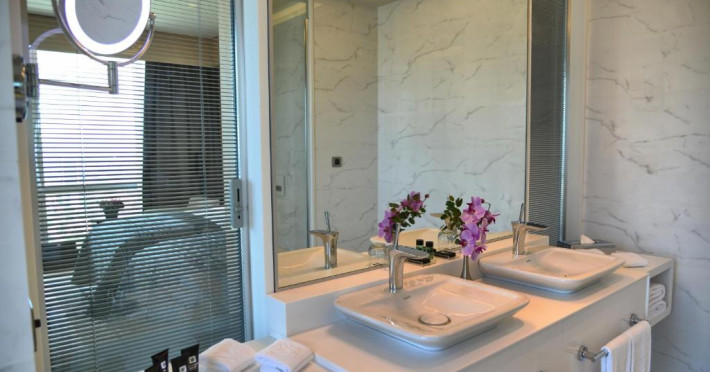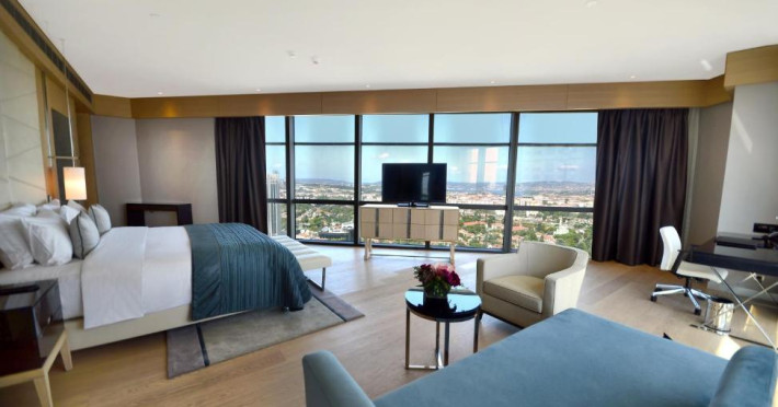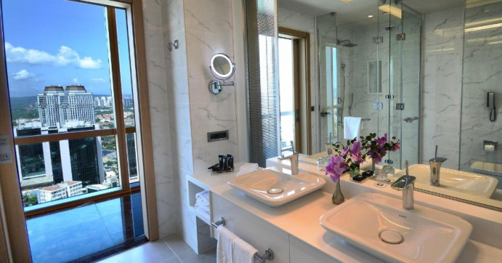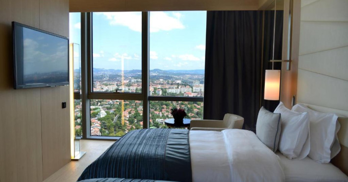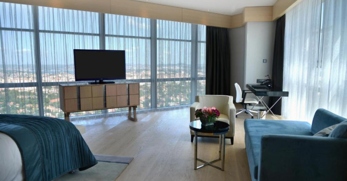 Featuring luxurious interiors, Wyndham Grand Istanbul Levent is located on Buyukdere Road. The hotel offers direct access to Levent Metro Station and numerous shopping malls including Ozdilek Park through underground connection. Guests can get a variety of health and beauty treatments at the 7900 m² extensive spa, including an indoor and outdoor pool, gym, sauna, and a Turkish bath. Tastefully decorated with fine furnishings, guest room management system, each air-conditioned room offers 47” flat-screen TV with satellite channels. Free WiFi and wired internet, a minibar, safe box and a work desk are also provided. There is an electric kettle with tea and coffee setup in each room. Iron and ironing board are available in all rooms. Most rooms also offer city views. All exclusive and suite rooms boast turndown service. The Hotel has connecting rooms in Deluxe city view and Deluxe Partial Sea view room categories. Connecting rooms can be arranged subject to availability and connecting room rate difference will be applied as EURO 82.50 (including taxes) per room per night. 7 dining outlets including buffet and à la carte restaurant and a lounge are available. You can start the day with a rich breakfast buffet boasting a wide range of products. The Plaza 177 Restaurant and Caréme Restaurant serve international cuisine and Turkish dishes. Guests can enjoy a drink at Vertice Cafe & Brasserie or at the breezy terrace of Carême Restaurant. Taksim Square is just 4 stops away from Levent Metro Station. Metrocity and Kanyon shopping malls are within walking distance from Wyndham Grand Istanbul Levent and Istinye Park is within 5 km. Istanbul Airport is 45.6 km from Wyndham Grand Istanbul Levent.