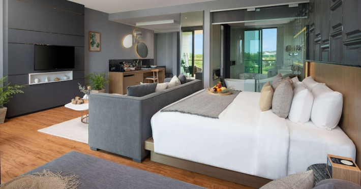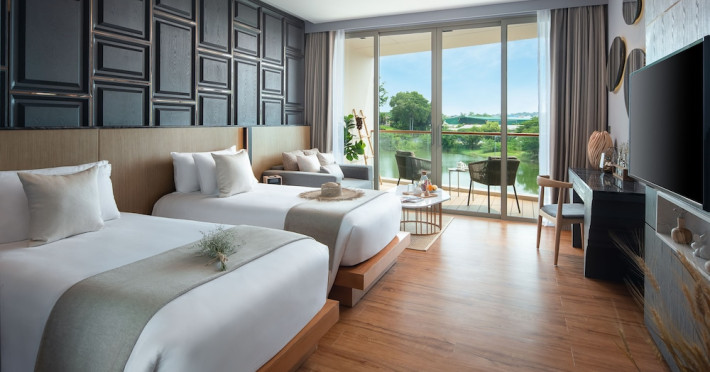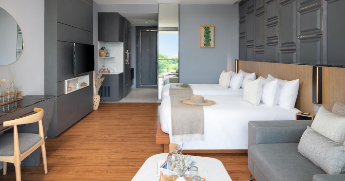 The hotel Wyndham Grand Nai Harn Beach Phuket lies approximately 1 km from the sea. The nearest bars and restaurants are located directly next to the building. There is a shuttle between the hotel and the airport (for a fee). The GPS-verified hotel is equipped with a 24h reception, a lobby, Wi-Fi, internet access, a lift, parking spaces as well as a TV lounge with satellite TV. In the outdoor area you will find a pool (open all year), where sun loungers, sun umbrellas and pool towels are available for free. There is also a children's pool. You can store your valuables in the safe, and your luggage in the hotel`s storage room. For very young guests, kid`s chairs and highchairs can be provided. There is also a laundry and ironing service available at an additional cost to customers. Ironing equipment can also be rented at the hotel for a fee. For your comfort the hotel page will ensure you are looked after. The energy supply is 220 Volts. For conventions and other business meetings, the hotel offers EXTRA_FEE conference rooms with printer, scanner, internet access as well as a catering service. In your hotel, a lot of focus is placed on sustainability. This includes among others the provision of soap and shampoo dispensers. American Express, Euro/Master Card and Visa are accepted as means of payment. Due to its barrier-free facilities , such as barrier-free entrances, the hotel is also suitable for wheelchair users. Catering Breakfast is offered from the buffet or à la carte. Lunch and dinner are also served as a set meal or à la carte. Your physical well-being is catered for by a restaurant with terrace and the cafeteria. The drinks menu of the hotel includes water, soft drinks, coffee and tea, beer and wine. Distances- Airport: approximately at 47 km