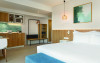 About 200 m from a public sandy beach lies the hotel Wyndham Residences Alvor Beach. The nearest restaurants and bars can be found within 1 km. The nearest shops you can reach within around 2 km, a supermarket is around 1 km away. There is a 24h shuttle service between the hotel and the airport (for a fee) 24h a day. The beach is awarded a blue flag. Here, there are cushions for a fee as well as beach towels available. Near the beach there is a promenade where you can go for a stroll. The air-conditioned, GPS-verified hotel has a 24h reception (check-in is possible around the clock), a lobby bar, Wi-Fi, internet access, a lift, showers and changing rooms, a first aid kit, parking spaces (limited) as well as a TV lounge with satellite TV. In the outdoor area of the property you will find a seasonally heated pool (open all year), where sun loungers, sun umbrellas and pool towels are available for free. For children there is also a children's pool with a non-swimming area. You can store your valuables in the safe, and your luggage in the hotel`s storage room. In addition, the hotel Wyndham Residences Alvor Beach is video-monitored 24h a day. For very young guests, kid`s chairs can be provided. There is also a laundry service available at an additional cost to customers as well as an ironing service. For your comfort there is a concierge service. The energy supply is 220, 230 and 240 Volts. If you want to explore the holiday region, you can use the car and motorbike rental service close to the hotel (extra fee). At the hotel reception, tickets are offered for excursions in the area. For guests on their honeymoon, the hotel has special offers such as champagne, sparkling wine, a basket of fruit or flowers in the room. In your hotel, a lot of focus is placed on sustainability. This includes the hotel`s own recycling bins and the provision of soap, shampoo and lotion dispensers. For a club card may incur extra charges at the hotel. Due to its barrier-free facilities , such as an automatic hotel door, a hotel door that can be opened manually, barrier-free entrances, wheelchair accessible rooms, a wheelchair accessible lift, a handrail in the elevator and wheelchair-accessible bathrooms, the hotel is also suitable for wheelchair users. Catering Breakfast is offered continental or from the buffet (extras on request). Dinner is served as a set meal. For the meals, there are a restaurant (gluten-free dishes) and a bar as well as the pool bar. The drinks menu of the hotel includes water, soft drinks, coffee and tea, beer and wine. Distances