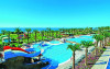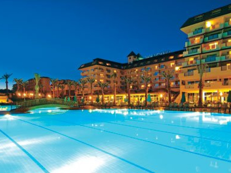 Deschis in anul 2006, cu o suprafata totala de 60.000 mp, hotelul dispune de 485 camere, distribuite astfel: 458 camere standard (suprafata 26-28 mp, capacitate maxima 3+1 pax); 5 camere pentru persoanele cu dizabilitati (suprafata 26-28 mp); 22 camere family (suprafata 36-40 mp, capacitate maxima 4+2 pax). Localizare: pe plaja, la 10 km de orasul Alanya si la 110 km de aeroport. Dotari camere: telefon, televizor, minibar, seif, aer conditionat centralizat, uscator de par, balcon/terasa, mocheta/parchet. Facilitati hotel: restaurant principal, 2 restaurante a la carte (turcesc, pescaresc), 9 baruri, piscine exterioare, aqua park cu 3 tobogane, piscina pentru copii, aqua park pentru copii, piscina interioara, sauna, baie turceasca, jacuzzi, masaje, bai cu namol, baie cu aburi, centru de infrumusetare, centru fitness, baschet, tenis, volei pe plaja, tenis de masa, aerobic, mini-fotbal, bowling, biliard, sala de jocuri, darts, amfiteatru, programe de animatie, mini club pentru copii 4-12 ani, magazine, sali de conferinte, inghetata, patiserie. Servicii cu plata: acces internet, seif in camera, masaje, spalatorie, servicii medicale, babysitting, inchirieri masini, sporturi nautice motorizate, vitamin bar, magazine, cafeaua turceasca, coafor, masaj, doctor, disco. Plaja: cu nisip si pietris. Sezlongurile si umbrelele sunt gratuite. Alte informatii: - animalele de companie nu sunt acceptate in hotel; - in restaurante tinuta este obligatorie. Hotelul isi rezerva dreptul de a modifica conceptul in timpul sezonului fara a anunta in prealabil aceste modificari.Datorita dinamicitatii domeniului disponibilitatea ofertelor se modifica de la un moment la altul. De aceea ofertele sunt valabile in limita locurilor disponibile. Agentia nu este responsabila pentru eventualele neconcordante care pot aparea intre informatiile privind tarifele si alte detalii din site si informatiile primite in agentie. In aceste cazuri vor avea prioritate, intotdeauna, informatiile primite in agentie.