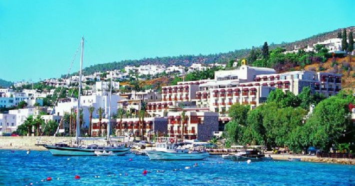Localizare: pe malul marii, la 4 km de centrul orasului BodrumDotari camere: baie, uscator de par, aer conditionat, TV, telefon, minibar, seif, pardoseala – mocheta, balcon, in camera se face curatenie – zilnic
