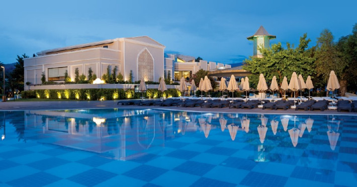 Hotelul (1st class holiday village) dispune de: 2 piscine, piscina pentru copii, restaurant principal, 3 restaurante A la carte, 5 baruri, centru SPA, baie turceasca, salon de infrumusetare, sauna, masaj, baie turceasca, sala de fitness, tenis, tenis de masa, baschet, volei pe plaja, dart, biliard, sporturi de apa, loc de joaca pentru copii, miniclub, animatie si parcare.