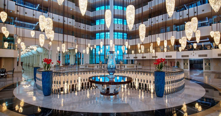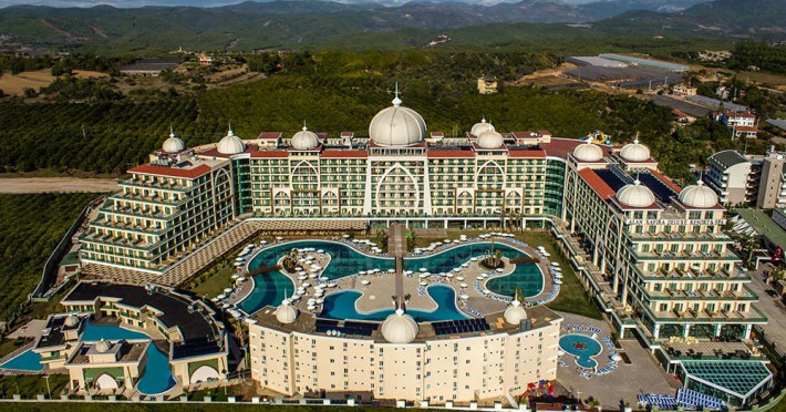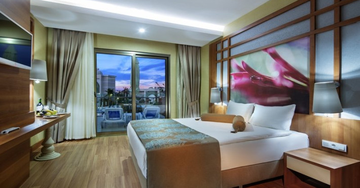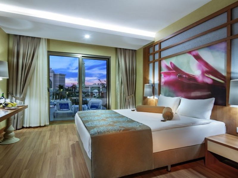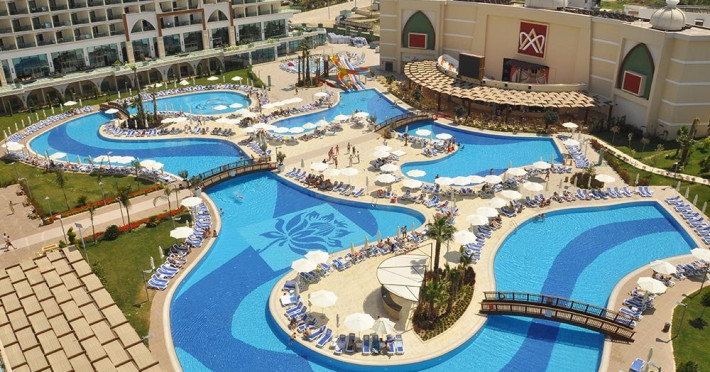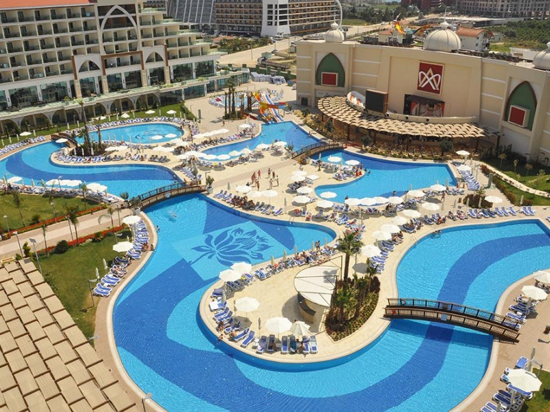 Facilitati hotel: Hotelul ofera oaspetilor sai urmatoarele facilitati: restaurant principal, 3 restaurante a la carte, 7 baruri, patiserie, 2 piscine exterioare, piscina pentru copii, piscina cu tobogane, piscina interioara, camera de jocuri, centru SPA, sali de conferinta, programe de animatie, baie turceasca, sauna, centru fitness, tenis de masa, dart, voley pe plaja, boccia, step, aerobic, gimnastica, aquapark, mini biblioteca, internet wireless in lobby, mini club, mini disco, piscina.