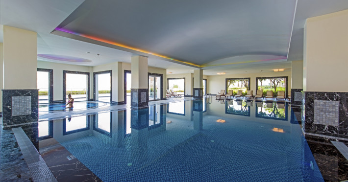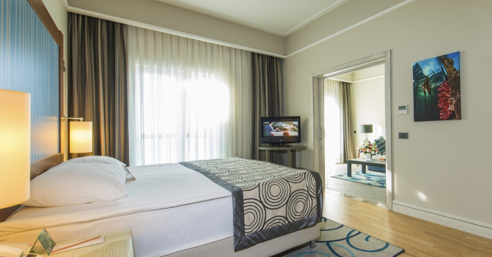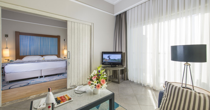 The aparthotel Xanadu Island is located in the vicinity of a private sandy/pebble/stone beach. The nearest bars and restaurants can be found at a distance of around 7 km. The city centre is around 26 km away. The beach is patrolled by a lifeguard andThe aparthotel Xanadu Island is located in the vicinity of a private sandy/pebble/stone beach. The nearest bars and restaurants can be found at a distance of around 7 km. The city centre is around 26 km away. The beach is patrolled by a lifeguard and awarded a blue flag. Here, there are sun loungers, cushions, sun umbrellas and beach towels available. Cold drinks are served at the bar on the beach. There is also a promenade here where you can go for a stroll. The seasonally air-conditioned, GPS-verified halal hotel is equipped with a 24h reception (check-in is possible around the clock), a lobby bar, Wi-Fi, internet access, 8 lifts, a supermarket and other shops, a boutique, a hairdresser, a jacuzzi, showers and changing rooms, parking spaces (limited) as well as a TV lounge. In the outdoor area you will find a garden as well as a seasonally heated and supervised pool that is open seasonally (open all year), where sun loungers, sun umbrellas and pool towels are available for free. For children there is also an integrated childrens pool. Furthermore, outside you can find a terrace. Inside the hotel you can use a heated indoor pool. You can store your valuables in the safe, and your luggage in the hotels storage room. For the young hotel guests there is a playground. For very young guests, kids chairs, highchairs and cots can also be provided. For the smallest children prams can be rented in the hotel. There is also a laundry and ironing service. Ironing equipment can also be borrowed at the hotel. For your comfort, in addition to the concierge service the hotel page will ensure you are looked after. If necessary, you can contact the medical centre at any time (for a fee). Guests at the accommodation can get a wake-up call from the hotel personnel. The energy supply is 220, 110, 120 and 230 Volts. For conventions and other business meetings, the hotel offers a business centre as well as a (auditorium-style) conference area with a reception, lectern, tables, a video projector, printer, scanner, overhead projector as well as internet access. A photographer can also be ordered from the hotel for business events. If you want to explore the holiday region, you can use the car rental service close to the hotel (extra fee). For guests on their honeymoon, the hotel has special offers such as a romantically-decorated room, personalised rooms/articles, rooms with a particularly romantic location and view, romantic dishes in the restaurant, champagne, sparkling wine, a basket of fruit or flowers in the room. In your hotel, a lot of focus is placed on sustainability. This includes waste segregation in the rooms, the hotels own recycling bins, the provision of soap and shampoo dispensers, organic food and ecological meals and environmentally-friendly cleaning. That is why the hotel Xanadu Island was also awarded a sustainability certificate. The hotel requires that all guests pay a deposit upon arrival. American Express, Euro/Master Card and Visa are accepted as means of payment. Due to its barrier-free facilities , such as an automatic hotel door, separate, barrier-free entrances, wheelchair accessible rooms, a wheelchair accessible lift, a handrail in the elevator and wheelchair-accessible bathrooms, the hotel is also suitable for wheelchair users. Catering As catering services the hotel offers all-inclusive, full board and full board plus. Breakfast is offered continental, from the buffet or as brunch (extras on request). Lunch and dinner are also served as a set meal, à la carte or from the buffet with starters, salads and desserts (extras on request and at extra cost). All Inclusive Light includes coffee amp; tea, cake amp; pastries, beer, wine as well as local alcoholic beverages. When booking all-inclusive, one welcome drink and one meal in the à la carte restaurant are included. As part of the all-inclusive service, water (24h), softdrinks (24h), coffee and tea (24h), beer (24h), wine (24h) as well as local and international alcoholic beverages (24h) are available at no extra charge. For the meals, there are a buffet restaurant with terrace (Italian, Mediterranean, calorie-reduced, gluten-free and vegetarian dishes) and several bars, the cafeteria, a 24h snackbar as well as the pool bar. The drinks menu of the hotel includes water, soft drinks, coffee and tea, beer and wine. A picnic bench can be used by guests for self-catering. Appropriate clothing is required for lunch and dinner. You can take part in the cooking classes offered by the hotel during your stay. Distances Airport: approximately at 60 km Cinema: approximately at 7 km Nearest bank: approximately at 7 km Business center: approximately at 7 km Sports amp; Leisure To keep your fitness up on holiday, there is a gym for guests to use. In the surrounding you can also take advantage of a range of water sports, including bananaboat riding and jet skiing. During your holiday you can also take part in aerobics courses, in Zumba courses and in yoga courses. Furthermore, various water sports such as windsurfing are offered in the area. A sauna and a wellness shower await you in the spa. The hotel also offers massages (extra fee) and beauty treatments. Let yourself be pampered in the Hamam and find peace and quiet in the relaxation room. Spend some healthy and relaxing hours with hot stone therapy, hydrotherapy as well as oxygen therapy. Infants can be looked after in the hotels own baby club. For older children the care takes place in the childrens club. There is a babysitting service in the hotel (extra fee) . The mini disco also offers age-appropriate entertainment for young hotel guests. Furthermore there is a youth club. In terms of adult entertainment, evening shows and live music are pres