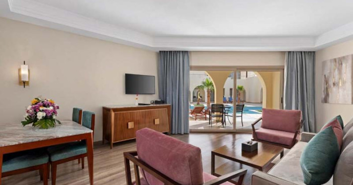 Localizare: hotelul este situat la 50 m de plaja Tia Heights Makadi Bay Beach si la 23 km distanta de Aeroportul International Hurghada. Facilitati hotel: balcon, terasa, gradina, camere pentru nefumatori, receptie non-stop, aer conditionat, internet gratuit, piscina, plaja in apropiere, sezlonguri, umbrele de plaja, prosoape de plaja, restaurante si baruri, cafenea, room service, serviciu de concierge, parcare. Activitati incluse: eveniment cu transmisie live, divertisment de seara, club pentru copii, sauna, sala de fitness. Facilitati contra cost: serviciu de transfer, serviciu de curatatorie si calcatorie, spa si centru wellness. IMPORTANT: Descrierea hotelului se bazeaza pe detaliile disponibile la momentul pregatirii tarifelor pentru sezonul turistic ce urmeaza a se desfasura si are caracter pur informativ. Hotelul poate aduce modificari de structura, denumiri camere, tip serivicii incluse/neincluse si altele, fara a notifica in prealabil. Pentru informatiile oficiale va rugam sa consultati website-ul hotelului.IMPORTANT