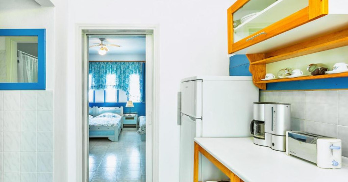 Toate unităţile de la Faros Apartments au chicinetă cu plită, frigider şi fierbător electric. De asemenea, unităţile au TV şi baie privată cu duş.