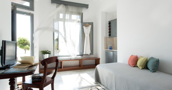 Xenones Filoterra este o proprietate de 4 stele care se află în Imerovigli (Santorini) și oferă piscină în aer liber, terasă cu șezlonguri și umbrele de soare, precum și centru spa/wellness care asigură servicii pentru un sejur extrem de relaxant. Facilitățile de la Xenones Filoterra includ și sală de fitness. Proprietatea are, de asemenea, servicii de recepție cu program non - stop, concierge și închirieri auto. Se oferă acces gratuit la internet Wi-fi în spațiile publice. Parcarea este disponibilă la proprietate gratuit.