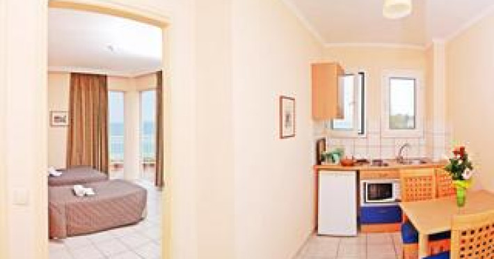 This attractive, family-friendly aparthotel boasts a fantastic setting overlooking the beach and the sea in Argassi on the Ionian island of Zakynthos.  Guests will find a variety of restaurants nearby serving both Greek and international cuisines, as well as shops, traditional taverns and thrilling nightclubs.  Travellers might venture into Zakynthos city to visit the Byzantine Museum of Zakynthos, or take a day trip to the northwest part of the island to see the famous shipwreck at Navagio Bay, reachable only by boat. The cosy and bright apartments are simply furnished, each featuring a balcony with views of the sea.  Guests might take advantage of the apartments fully-equipped kitchen to try out a local recipe and enjoy drinks and snacks at the poolside bar.  Children can play on the playground or splash around in the childrens swimming area at the pool while parents relax in a sunbed, all during a peaceful family holiday.Datorita dinamicitatii domeniului disponibilitatea ofertelor se modifica de la un moment la altul. De aceea ofertele sunt valabile in limita locurilor disponibile. Agentia nu este responsabila pentru eventualele neconcordante care pot aparea intre informatiile privind tarifele si alte detalii din site si informatiile primite in agentie. In aceste cazuri vor avea prioritate, intotdeauna, informatiile primite in agentie.