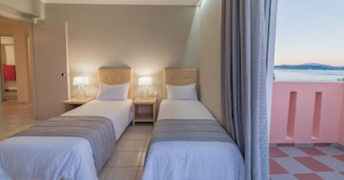 Near Argassi Beach. With a stay at Xenos Kamara Beach in Zakynthos, youll be on the beach, just steps from Argassi Beach and a 4-minute drive from Zakynthos Ferry Terminal. This beach aparthotel is 3.9 mi (6.3 km) from Laganas Beach and 4.8 mi (7.7 km) from Banana Beach. Make yourself at home in one of the 49 air-conditioned rooms featuring kitchenettes with full-sized refrigerators/freezers and stovetops. Your pillowtop bed comes with premium bedding. Rooms have private furnished balconies. Flat-screen televisions with satellite programming provide entertainment, while complimentary wireless Internet access keeps you connected. Grab a bite from the snack bar/deli serving guests of Xenos Kamara Beach. Unwind at the end of the day with a drink at the bar/lounge or the poolside bar. Cooked-to-order breakfasts are available daily from 9 AM to 11 AM for a fee. Take advantage of recreation opportunities such as an outdoor pool or take in the view from a terrace and a garden.Datorita dinamicitatii domeniului disponibilitatea ofertelor se modifica de la un moment la altul. De aceea ofertele sunt valabile in limita locurilor disponibile. Agentia nu este responsabila pentru eventualele neconcordante care pot aparea intre informatiile privind tarifele si alte detalii din site si informatiile primite in agentie. In aceste cazuri vor avea prioritate, intotdeauna, informatiile primite in agentie.