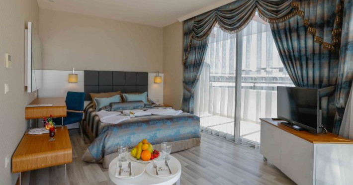 Xoria Deluxe Hotel este un complex de lux cu 5 stele, situat pitoresc pe malul mării. Cunoscut ca unul dintre cele mai recente și rafinate hoteluri din Regiunea Alanya, Xoria Deluxe reprezintă o combinație armonioasă între eleganța tradițională și luxul contemporan. Construit și gestionat cu o viziune ce redefinește conceptul de rafinament și confort, acesta promite o experiență de neuitat pentru oaspeții săi.Facilități camere