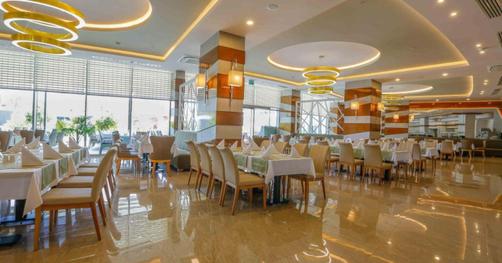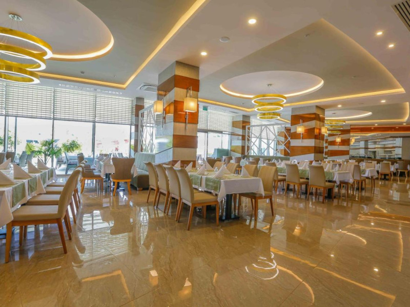 Turistii se pot bucura de un restaurant principal, o patiserie, bar pe plaja, in receptie si la piscina. La restaurantul A'La Carte turistii pot degusta preparate cu specific otoman. Hotelul dispune si de 2 sali de conferinta.