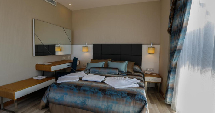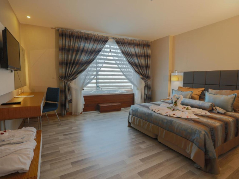 Locatie: XORIA DELUXE HOTEL este situat la 115 km de Aeroportul Antalya fiind unul dintre cele mai noi și mai luxoase hoteluri din Regiunea Alanya. Acesta redefinește eleganța trecutului și luxul modern de astăzi. Facilitate hotel: Restaurant: Restaurant principal - bufet deschis Restaurant pe plajă - clătite turcești snack Xoria patiserie - torturi și patiserie Xoria a'la carte – bucatarie turceasca sau de peste Baruri: Obby bar Lobby bar Relax pool Pool bar Beach bar Plaja: accesibilă prin tunel subteran care aparține hotelului. Plaja noastră este o combinare de nisip și pietriș. Șezlongurile, umbrelele și prosoapele de plajă sunt servicii gratuite. Prosoapele de plajă vor fi obtinute de la recepția spa prin utilizarea unei carti de prosoape. Animatie: Pe durata zilei sunt disponibile jocuri și competiții, iar seara sunt organizate spectacole în amfiteatru. Sunt oferite spectacole speciale precum: Nopți Turcești, dansuri culturale, animații pentru copii, aerobic, gimnastică, darts, tenis de masă și volei pe plajă în timpul sezonului. SPA: Suprafața zonei noastre de spa este de 800 m2. Există 5 camere de masaj și îngrijire a pielii în zona de spa. Servicii de spa contra cost: Diverse tipuri de masaje, peeling, spumă, îngrijirea pielii și a corpului. Servicii de spa gratuite: Fitness, baie turcească și cameră de aburi. Facilitate camera: Toate camerele sunt complet echipate cu TV cu ecran plat, acces la internet wireless, telecomandă (aer condiționat central) și facilități. Are tot ce vă puteți aștepta de la confortul și luxul modern.Info