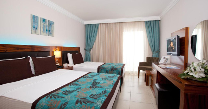 Localizare: la distanta de mers pe jos ce centrul orasului Alanya si la 123km de aeroportul din Antalya. Activitati: Parc acvatic, Tenis, Bcicletă, Sporturi acvatice, Fotbal Facilitati pentru copii: piscina pentru copii, Activitati dimineata si seara pentru copii Spa: Camere de masaj, Sauna, baie turceasca, Baie de aburi Facilitati camere: Televizor LCD, conexiune satelit, minibar, WI-FI, ceainic (ceai si cafea), telefon, aer conditionat, balcon, Serviciile noastre in baile noastre includ: uscator de par, sampon, gel de dus, lotiune de corp, produse de ingrijire personala.Info