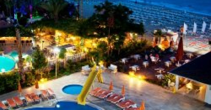 Hotelul a fost construit in 1999 si a fost renovat in 2011. Dispune de 71 de camere repartizate astfel: • 60 camere standard ( capacitate maxima 3 pers.); au balcon si vedere la mare sau la oras; • 1 camera pentru persoane cu dizabilitati; • 10 camere executive ( capacitate maxima 4 pers.); au balcon si vedere la mare; Localizare: pe faimoasa plaja Kleopatra, la 120 km de aeroport. Dotari camera: telefon, TV satelit, minibar ( apa si bauturi nealcoolice, se reumple zilnic), aer conditionat, seif, baie, uscator de par, Wi-Fi, balcon. Alte informatii: schimbarea asternuturilor se face de 3 ori pe saptamana, prosoapele se schimba zilnic. Facilitati hotel: restaurant principal, 2 restaurante a la carte - mediteranean, international (cu taxa de rezervare), 6 baruri, piscina exterioara pentru adulti si copii cu tobogan, sezlonguri si umbrele la piscina, jacuzzi ( gratuit), baie turceasca ( gratuit), loc de joaca pentru copii, volei pe plaja, animatie o data pe saptamana ( seara turceasca cu muzica live), tenis de masa, darts. Servicii cu plata: teren de tenis ( la 300 m de hotel), sauna, baie cu aburi, sporturi nautice motorizate, centru spa (masaj, peeling), coafor, doctor, spalatorie, inchiriere masini, magazin de suveniruri. Plaja de nisip si pietricele. Sezlongurile si umbrelele sunt gratuite. Pentru prosoape se plateste un depozit. Alte informatii: - barul de pe plaja este contra cost - nu sunt incluse in conceptul de ALL INCLUSIVE: bauturile importate, sampania, sucurile naturale de fructe, inghetata, cocktail-urile - animalele de companie nu sunt permise; - in restaurante tinuta este obligatorie; - in functie de conditiile meteorologice, programul de functionare a restaurantelor si barurilor se poate modifica. Hotelul isi rezerva dreptul de a modifica conceptul in timpul sezonului fara a anunta in prealabil aceste modificari.Datorita dinamicitatii domeniului disponibilitatea ofertelor se modifica de la un moment la altul. De aceea ofertele sunt valabile in limita locurilor disponibile. Agentia nu este responsabila pentru eventualele neconcordante care pot aparea intre informatiile privind tarifele si alte detalii din site si informatiile primite in agentie. In aceste cazuri vor avea prioritate, intotdeauna, informatiile primite in agentie.