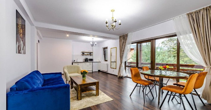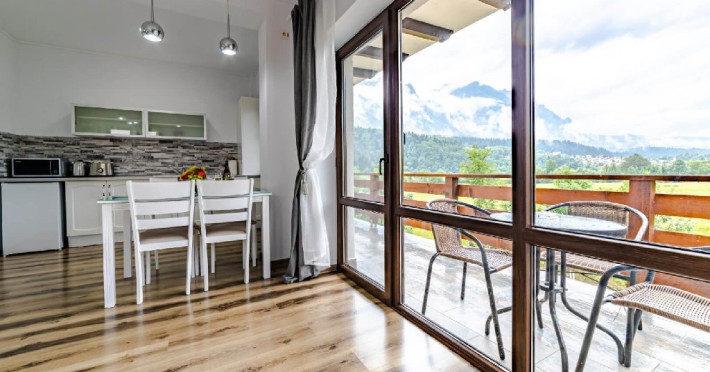 Balcoanele sunt generoase cu priveliste spre munte atat din dormitor cat si din living.