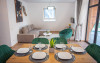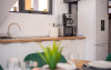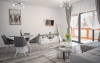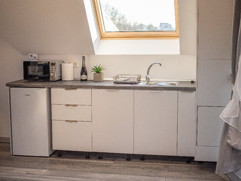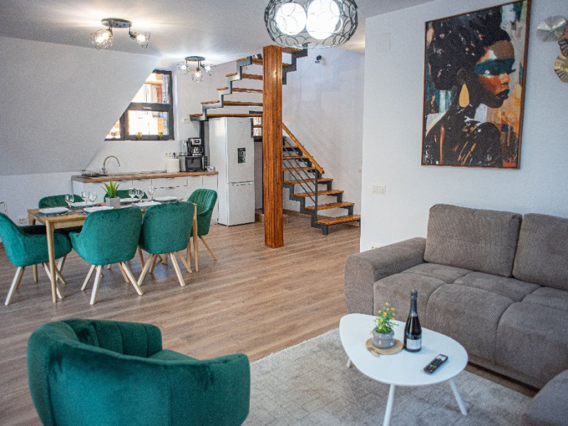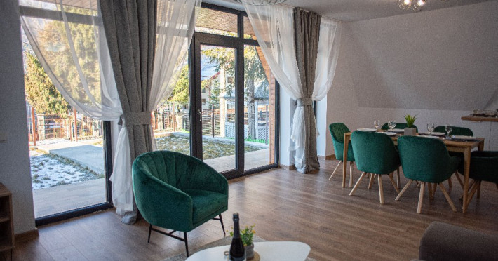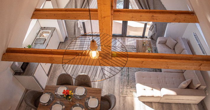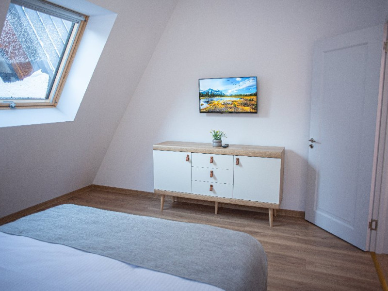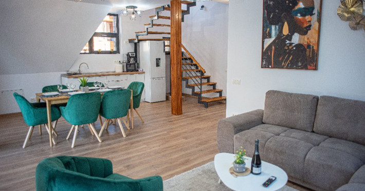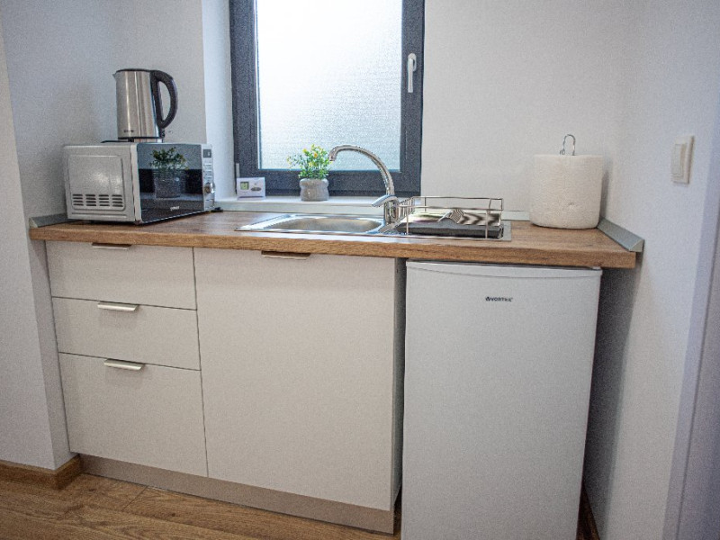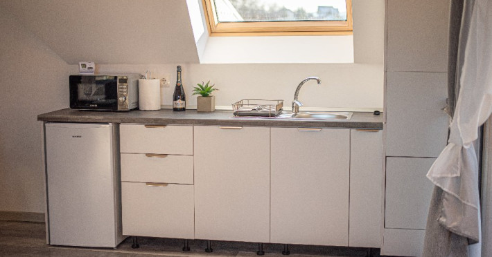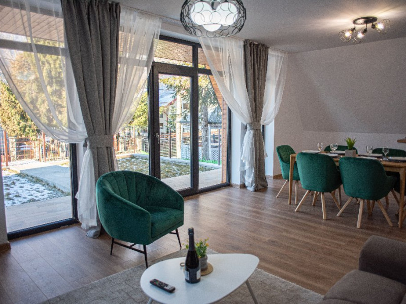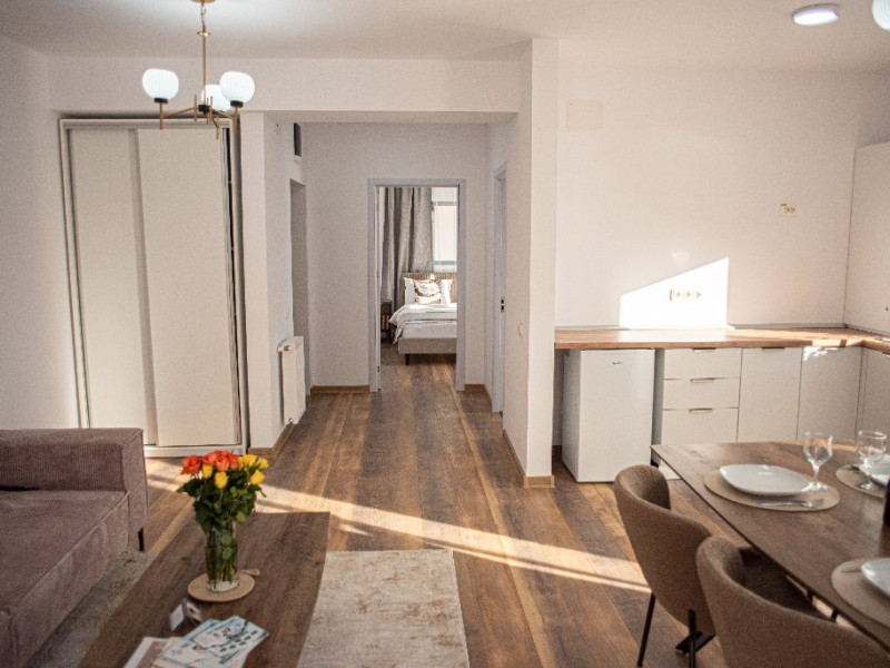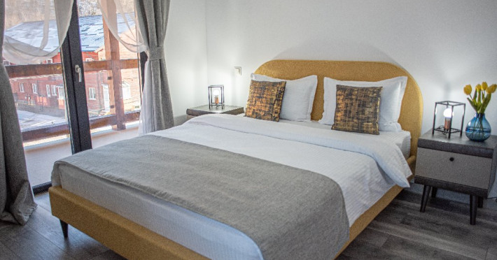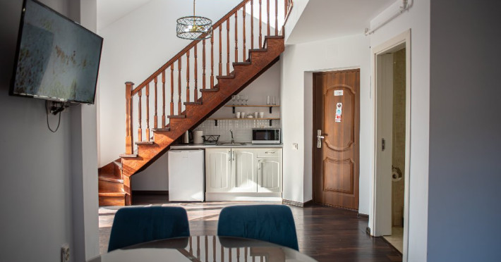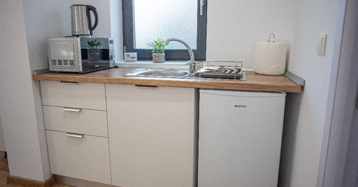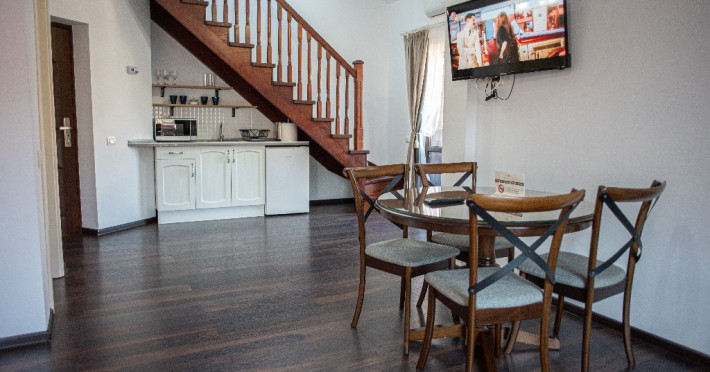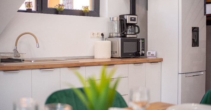 Toate apartamentele, suitele, studioul au chicineta dotate modern (cuptor cu microunde, vesela, cana electrica, frigider, prajitor paine etc.) Balcoanele generoase ofera zona de relaxare cu priveliste panoramica spre munte atat din dormitor cat si din living.