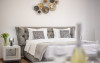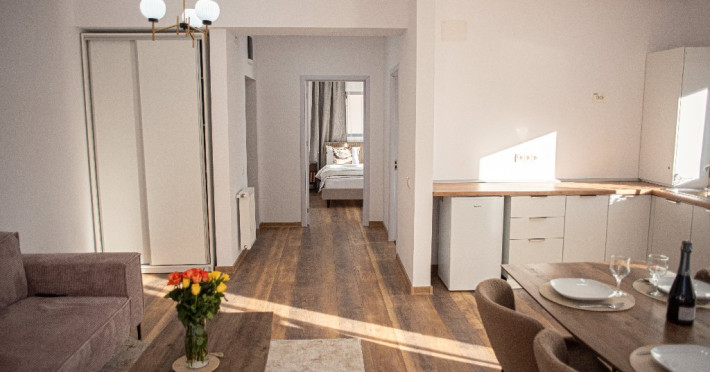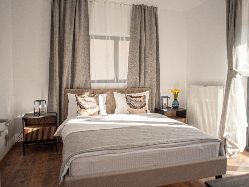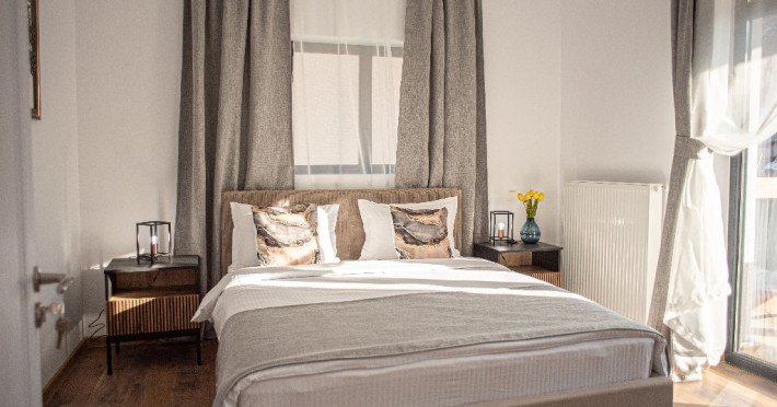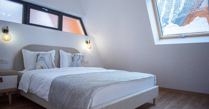Apartamentele pentru 4 persoane (2 adulti si 2 copii sau 4 adulti) sunt formate din dormitor cu pat matrimonial, marime king size, dormitor separt printr-o usa de un living spatios dotat cu canapea extensibila si au o singura baie.