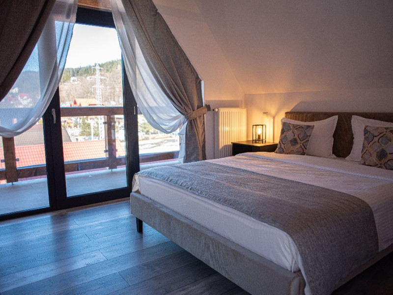Complexul rezidential este format din 4 unitati de cazare cu 64 de apartamente, studio, suite, camere duble, pe un platou insorit, (7 suite pentru 6 persoane, 42 apartamente pentru 4 persoane, 6 studio pentru 3 persoane, 9 camere duble pentru 2 persoane) si 3 casute de tip A Frame ce va ofera cea mai spectaculoasa priveliste asupra masivelor Bucegi, Baiului si Caraiman. Repartizarea se va face la receptie.