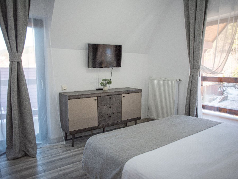 Camere duble pentru 2 persoane pot acomada si copii, un copil pana in 5 ani in pat cu parintii si un copil pana in 14 ani cu pat supolimentar.