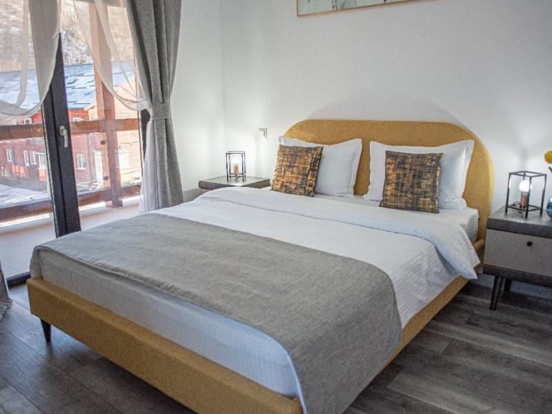INFORMATII GENERALEYael Luxury Apartments este un complex hotelier format din 4 cladiri distincte, situate in Busteni, in zona Golfului Regal-Piatra Arsa, intr-un cartier extrem de linistit, cu acces facil din DN 1. Complexul este situat la o distanta de 3 km fata de centrul orasului Busteni (cca 1 km Castelul Cantacuzino.