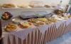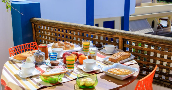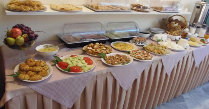 Yakinthos Hotel servește zilnic un mic dejun tip bufet în zona de luat masa. La proprietate există un bar care oferă cafea și diverse băuturi. Acestea pot fi servite atât în interior, cît si în aer liber, pe terasă, în funcție de vreme.