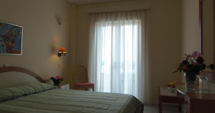 Sunt disponibile 39 camere. Fiecare cameră dispune de mașină pentru preparare cafea sau ceai și fierbător Camerele confortabile de la Yakinthos Hotel sunt dotate cu pardoseală de gresie/ marmură, aer condiționat, Tv și seif. Unele camere au balcon cu vedere la mare sau la piscină. În camere există baie cu cadă sau duș prevăzută cu foehn. Oaspeții au acces gratuit la serviciul Wi-fi în camere. Curățenia in cameră se face zilnic. Proprietatea oferă camere pentru familie cu o suprafață mai mare și un număr mai mare de paturi față de cele standard. Se pot rezerva de asemenea camere pentru nefumători.