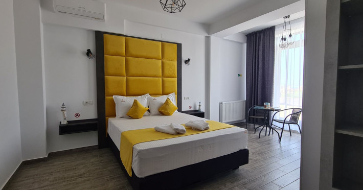 YAMADA va ofera camere de inchiriat in regim hotelier ONLY ADULTS, spatioase, cu bai proprii si balcoane generoase Camerele sunt dotate cu WI-FI free, AC, espressor, minibar, feon, set baie complet RITUALS. Locuri de parcare peste capacitate si mic dejun copios (beakfast BOX) .Asistenta 24h cu,camerista si receptionera care sunt la dispozitia clientului zilnic pe perioada programului de lucru .Locatia este noua si se afla la doar 3 minute de plaja. Totul intr-un ambient DISCRET si RELAXANT. YAMADA has city views, free WiFi and free private parking, situated in Navodari, 8.4 km from Siutghiol Lake. Fitted with a terrace, the units offer air conditioning and feature a flat-screen TV and a private bathroom with shower and free toiletries. A balcony with river views is offered in each unit. Guests can also relax in the garden. City Park Mall is 14 km from the aparthotel, while Ovidiu Square is 18 km from the property. The nearest airport is Mihail Kogalniceanu International Airport, 15 km from YAMADA.