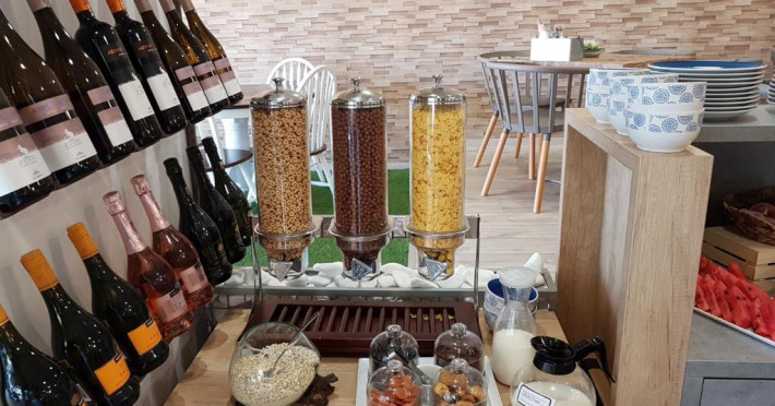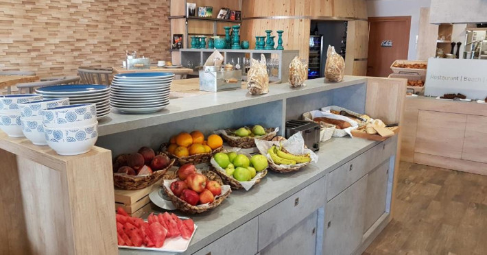 Oaspetii isi pot incepe ziua cu un mic dejun continental servit zilnic la restaurantul proprietătii, unde se pot bucura de bucătăria grecească pentru pranz si cină.