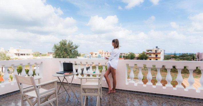 Hotelul de apartamente oferă o terasă la soare.