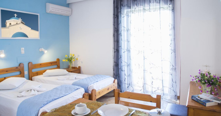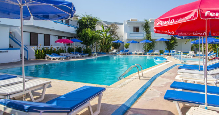 Localizare: situat in orasul Psaldi, la 400 m de plaja Paradiso, la 1.1 km de Kos Marina –portul de agrement, la 2.5 km de centrul și portul orasului Kos, ruinele romane și la 25.5 Km de Aeroportul International Kos.