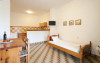 Facilitati vila: Vila Youla este compusa dint-o singura cladire amplasata intr-o gradina frumoasa de portocali si flori de leandru avand 2 apartamente cu cate un dormitor fiecare, la primul etaj (pentru maximum 3 persoane) si 8 studiouri - 4 studiouri standard, la etajul al 2 lea al vilei si 4 studiouri superior, la etajul al 3 lea al vilei (pentru maximum 2 persoane).