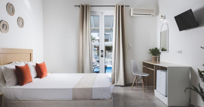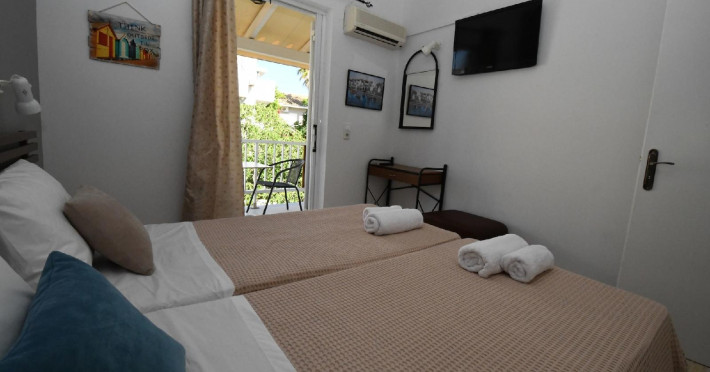Located in Zakynthos, Adorno di Zante is a 4-minute drive from Agios Sostis Beach and 7 minutes from Laganas Beach. This guesthouse is 2. 8 mi (4. 6 km) from Kalamaki Beach and 4. 3 mi (6. 9 km) from Keri beach. Pamper yourself with onsite massages or enjoy recreation amenities such as an outdoor pool. Additional features at this guesthouse include complimentary wireless Internet access and tour/ticket assistance. Featured amenities include multilingual staff, luggage storage, and lockers. A roundtrip airport shuttle is provided for a surcharge (available on request), and free self parking is available onsite. Grab a bite from the grocery/convenience store serving guests of Adorno di Zante. Continental breakfasts are available daily from 8:00 AM to 10:00 AM for a fee. Make yourself at home in one of the 14 air-conditioned rooms featuring flat-screen televisions. Rooms have private furnished balconies. Complimentary wireless Internet access keeps you connected, and digital programming is available for your entertainment. Bathrooms have showers and hair dryers.Located in Zakynthos, Adorno di Zante is a 4-minute drive from Agios Sostis Beach and 7 minutes from Laganas Beach. This guesthouse is 2. 8 mi (4. 6 km) from Kalamaki Beach and 4. 3 mi (6. 9 km) from Keri beach. Pamper yourself with onsite massages or enjoy recreation amenities such as an outdoor pool. Additional features at this guesthouse include complimentary wireless Internet access and tour/ticket assistance. Featured amenities include multilingual staff, luggage storage, and lockers. A roundtrip airport shuttle is provided for a surcharge (available on request), and free self parking is available onsite. Grab a bite from the grocery/convenience store serving guests of Adorno di Zante. Continental breakfasts are available daily from 8:00 AM to 10:00 AM for a fee. Make yourself at home in one of the 14 air-conditioned rooms featuring flat-screen televisions. Rooms have private furnished balconies. Complimentary wireless Internet access keeps you connected, and digital programming is available for your entertainment. Bathrooms have showers and hair dryers.