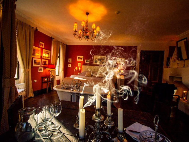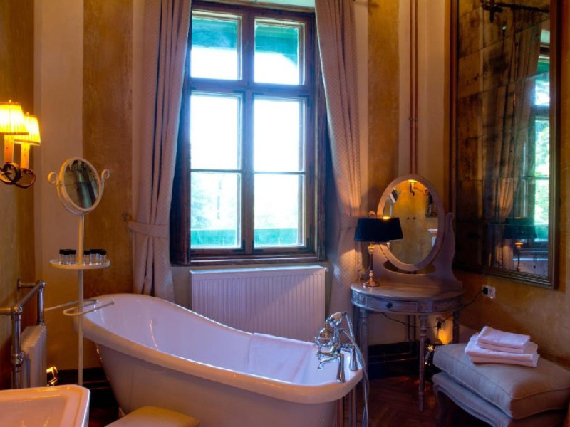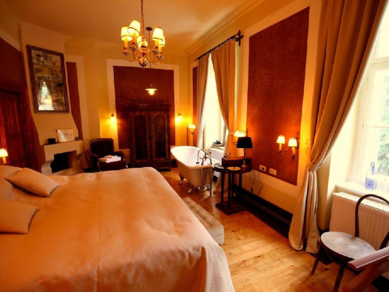 The New Castle (clasificare 5 stele): Camera Armin - 115 m, suita 2 camere fiecare cu dormitor si living cu cada de baie, doua dusuri, 2 seminee. Camera Eva - 60 m, camera dubla cu cada in camera, baie cu dus, semineu. Camera Ilona - 50 m, camera dubla open space cu cada de baie in camera, dus deschis spre camera, semineu. Camera Zsofia - 60 m, camera dubla open space cu cada de baie in camera, dus deschis spre camera, semineu. Camera Janos - 60 m, camera dubla open space cu cada de baie in camera, dus de schis spre camera, semineu. Camera Emma - 35 m, camera dubla, cu cada de baie in camera, dus, semineu. Camera Miklos - 35 m, camera dubla, cu cada de baie in camera, dus, semnieu. Camera Klementina - 24 m, camera dubla, cu baie de schisa spre camera. Camera Johanna - 25 m, camera dubla cu cada in camera, dus si semineu. Camera Erzsebet - 24 m, camera dubla cu cada. Camera Etelka - 25 m, camera dubla cu cada in camera,baie cu dus, semineu.
