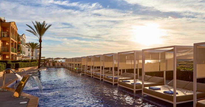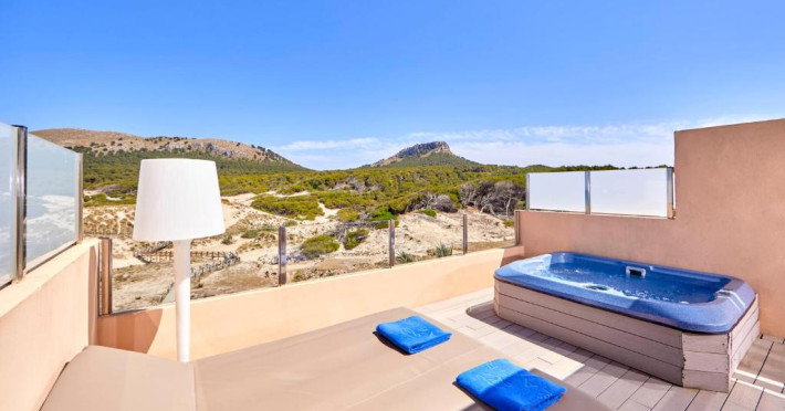 This all-inclusive complex is on Mallorca’s Cala Mesquida Beach. It offers a tennis court, gym and indoor and outdoor pools. There is a spa with sauna, hot tub and Turkish bath.
