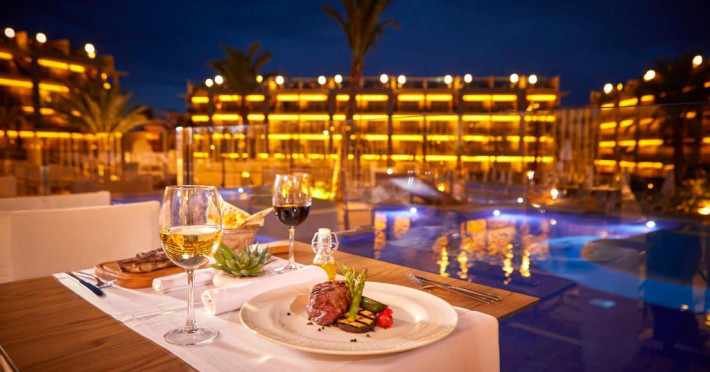 La Zafiro Palace Alcudia Spa oaspeții au la dispoziție 4 restaurante unde pot savura mâncăruri delicioase, în stil bufet sau à la carte. Preparate din bucătăria internațională, mediteraneană și italiană propun mâncăruri pentru gusturi diverse.. Masa poate fi servită atât în interior, cît si în aer liber, pe terasă, în funcție de vreme. Oaspeţii pot avea diverse băuturi răcoritoare sau alcoolice la bar. În cadrul proprietății există și o cafenea care servește specialități din cafea și diverse delicatese.