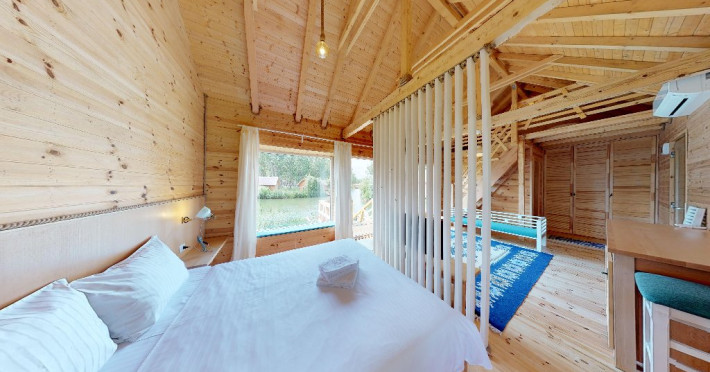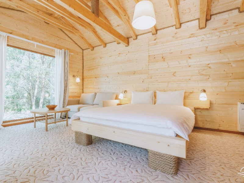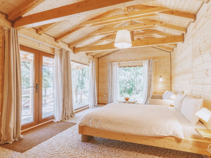 Pentru cei care prefera energia padurii in detrimentul apei, casele in copac sunt alegerea perfecta. Acestea au terasa si baie proprie, un pat matrimonial si o canapea extensibila.