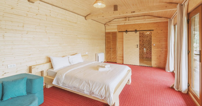 Casele cu ciubar, cu pat matrimonial si canapea extensibila, baie proprie, completeaza terasa proprie cu un ciubar menit sa ofere relaxare si confort.