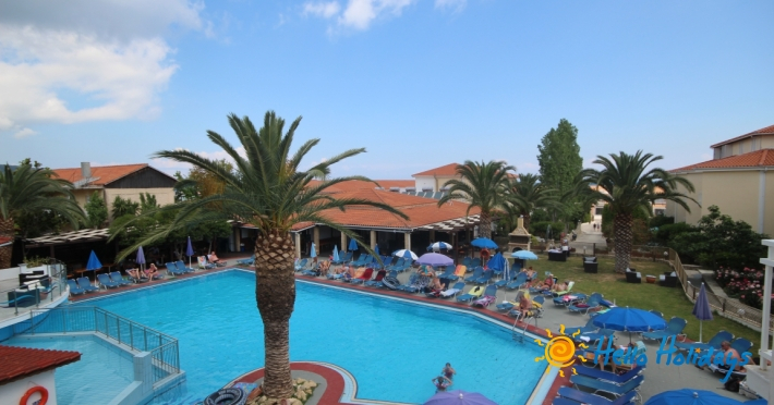 Hotelul este micut si cochet, ofera o piscina, loc de joaca pentru copii, internet cafe, biliard, bar si restaurant cu specific grecesc.