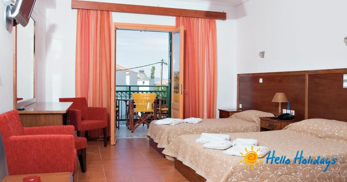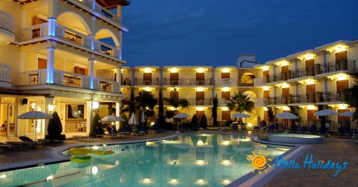 Facilitati hotel: Hotelul este o capodoperă a arhitecturii Zakynthiane şi unul dintre cele mai frumoase hoteluri din Zante. Acesta combină confortul modern cu ospitalitatea tradiţională. Există un total de 48 unităţi de cazare la acest hotel de apartamente. Este alcătuit dintr-un hol cu recepţie non-stop şi serviciul de check-out, un salon cu TV, o cafenea, restaurant şi un bar unic. Acesta oferă gratuit Internet acces wirless, spălătorie pentru o taxă suplimentară şi un serviciu de închiriere de biciclete (de asemenea, pentru o taxă suplimentară). Facilităţile suplimentare includ aer condiţionat, un seif, facilităţi de schimb valutar, o garderobă, lift pentru accesul la etajele superioare, un stand de ziare, salon de coafură, cameră de jocuri, discoteca, facilităţi de conferinţe şi un parc auto. Hotelul oferă o piscină fantastică cu apă dulce în aer liber cu șezlonguri și umbrele de soare. Există, de asemenea, zona de înot pentru copii și un snack bar la piscină. În plus, o masă de biliard / snooker este oferit la un cost suplimentar. Oaspeții se pot relaxa, de asemenea, în cada cu hidromasaj sau se pot bucura de un masaj. În plus, hotelul organizează un program de divertisment pentru copii (pentru o taxă). Plaja din apropiere este de nisip.