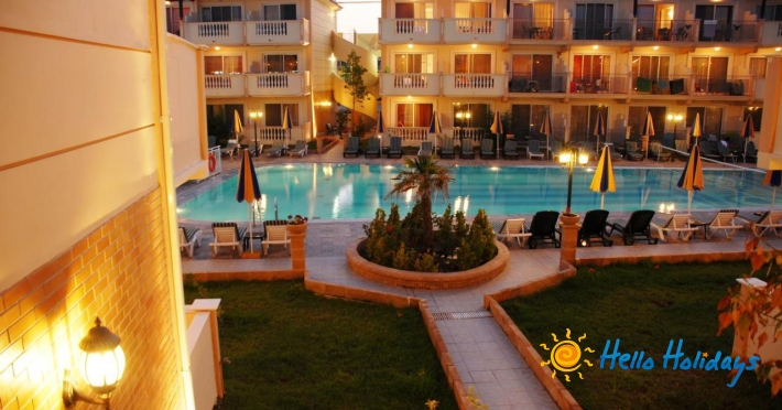 Localizare: Este situat in Tsilivi, mai exact in micul port pescaresc Planos, pe plaja cu steag albastru, la 70 m de statia de autobuz si taxi, 70 m distanta fata de centrul statiunii Tsilivi, 3 km distanta fata de orasul Zante si la numai 7 km distanta fata de aeroportul din Zakynthos.