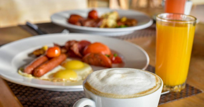 Oaspeții pot savura preparate din bucătăria internațională și specialități mediteraneene la restaurantul proprietății. De asemenea, pot savura băuturi la bar sau la barul de la piscină.