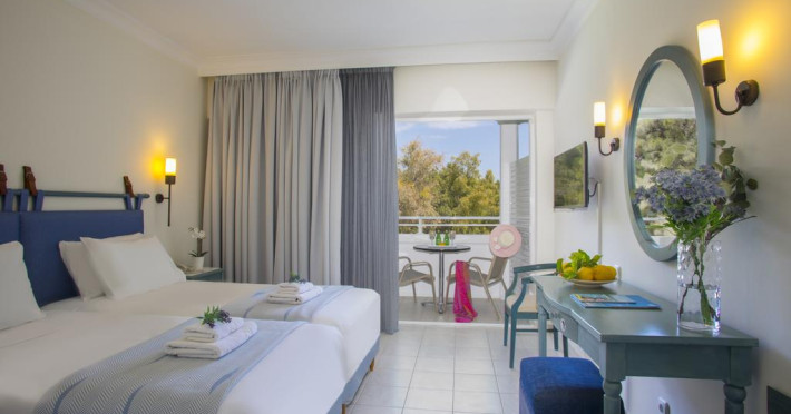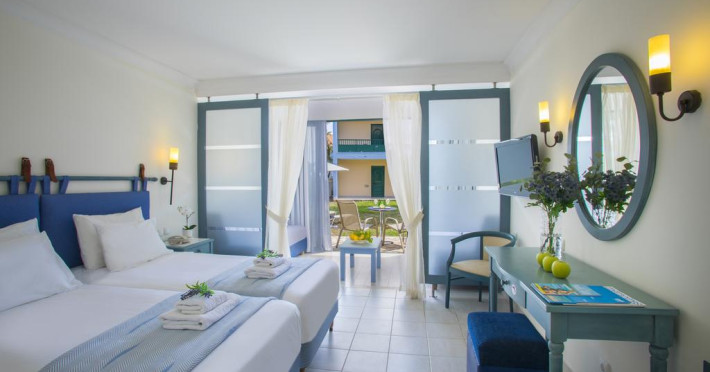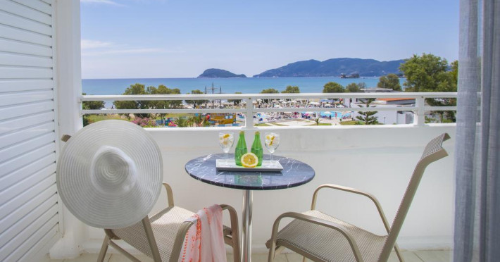 Camerele confortabile de la Zante Beach au pardoseală de gresie/ marmură, aer condiționat, Tv cu canale prin satelit și seif. Fiecare cameră dispune de cană-fierbător. Unele camere au balcon cu vedere la mare sau la grădină. În camere există baie cu cadă sau duș ce are în dotare foehn și articole de toaletă gratuite. Curățenia in cameră se face zilnic. Fiecare unitate de cazare are frigider. Proprietatea oferă camere pentru familie cu o suprafață mai mare și un număr mai mare de paturi față de cele standard. Se pot rezerva de asemenea camere pentru nefumători.