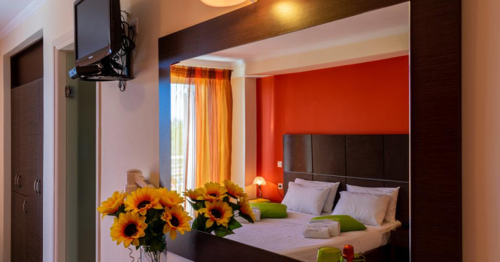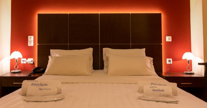 Sunt disponibile 26 camere. Camerele confortabile de la Zante Pantheon sunt dotate cu pardoseală de gresie/ marmură, aer condiționat, Tv și seif. Unele camere au balcon cu vedere la mare sau la piscină. Fiecare cameră dispune de un aparat pentru preparare cafea sau ceai, cană-fierbător și minibar. Oaspeții pot solicita serviciul de room service pentru a servi masa sau diverse băuturi. În camere există baie cu cadă sau duș ce are în dotare foehn și articole de toaletă gratuite. Curățenia in cameră se face zilnic. Fiecare unitate de cazare are frigider. Proprietatea oferă camere pentru familie cu o suprafață mai mare și un număr mai mare de paturi față de cele standard.