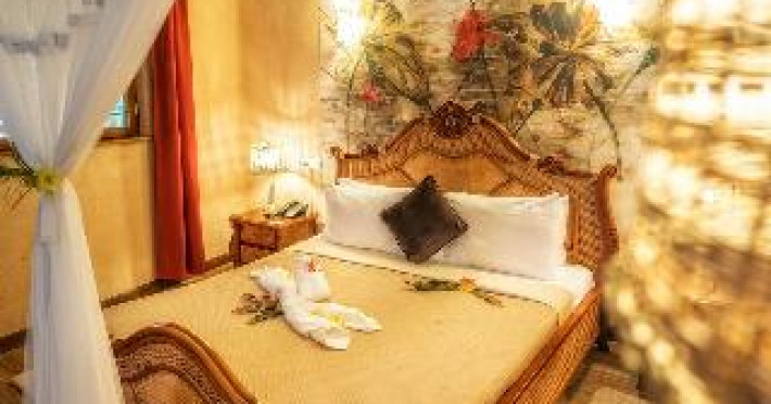 On the beach. Located in Kama, Zanzi Resort is by the ocean, within a 15-minute drive of Masingini Forest and Chapwani Island. This 5-star lodge is 5.5 mi (8.9 km) from Siso Spice Farm and 5.6 mi (9.1 km) from Kidichi Spice Farm. Make yourself at home in one of the 13 individually decorated guestrooms, featuring minibars and DVD players. Your room comes with a Select Comfort bed. Rooms have private patios. Complimentary wireless Internet access keeps you connected, and satellite programming is available for your entertainment. Private bathrooms have deep soaking bathtubs and rainfall showerheads. For lunch or dinner, stop by Zanzibar spices, a restaurant that specializes in international cuisine. Dining is also available at the coffee shop/cafe, and 24-hour room service is provided. Wrap up your day with a drink at the bar/lounge. A complimentary full breakfast is served daily from 8 AM to 11 AM. Pamper yourself with a visit to the spa, which offers massages, body treatments, and facials. You can take advantage of recreational amenities such as an outdoor pool and a fitness center. Additional amenities at this Mediterranean lodge include complimentary wireless Internet access, concierge services, and a picnic area. Getting to nearby attractions is a breeze with the area shuttle (surcharge) that operates within 20 km.Datorita dinamicitatii domeniului disponibilitatea ofertelor se modifica de la un moment la altul. De aceea ofertele sunt valabile in limita locurilor disponibile. Agentia nu este responsabila pentru eventualele neconcordante care pot aparea intre informatiile privind tarifele si alte detalii din site si informatiile primite in agentie. In aceste cazuri vor avea prioritate, intotdeauna, informatiile primite in agentie.