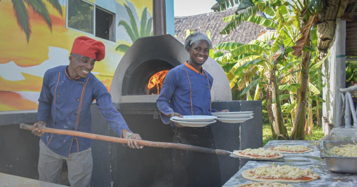 Proprietatea asigură zilnic un mic dejun tip bufet. Restaurantul proprietății este specializat in preparate locale, africane și internaționale, cu opțiuni cu fructe de mare. Personalul vorbește germană, engleză, franceză și olandeză și poate răspunde tuturor solicitărilor oaspeților.