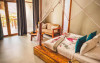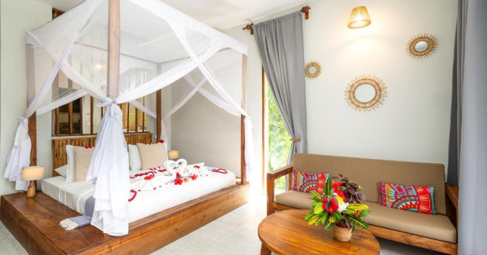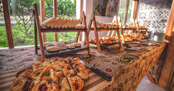 Resortul dispune de camere și suite decorate in stil zanzibar, majoritatea cu vedere la ocean și terase private. Facilitățile includ piscină infinity cu vedere panoramică, centru spa cu tratamente tradiționale africane, restaurant principal cu specific internațional și un restaurant à la carte cu fructe de mare.