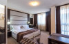 -Camera deluxe : capacitatea maxima este de 2 adulti cu un copil sau 2 copii. Suprafata camerei este de maxim 51m patrati. Camera dispune de un pat dublu impreuna cu o canapea extensibila. Camera deluxe dispune de : balcon, telefon,minibar, TV, buton de panica, Wi-Fi, Cablu Tv, incalzirea centralizata, mini seif, fierbator, prosoape si cosmetic.