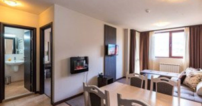 -Apartament cu 2 dormitoare : capacitatea maxima pentru acest tip de camera este de 6 persoane. Suprafata apartamentului este de 100 de metrii patrati si ofera 2 dormitoare si o canapea extensibila in camera de zi . Apartamentul este mobilat la cele mai noi tendinte de design si combina luxul cu confortul.