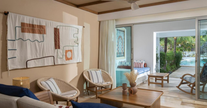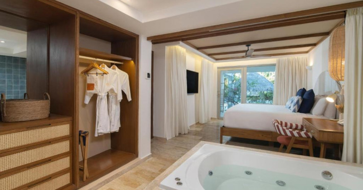 Suitele de la Zel Punta Cana- All inclusive au decor elegant, cu o terasă privată și un jacuzzi® pentru 2 persoane și minibaruri complet aprovizionate. Fiecare suită este prevăzută cu o canapea extensibilă. Sunt disponibile apartamente de familie.