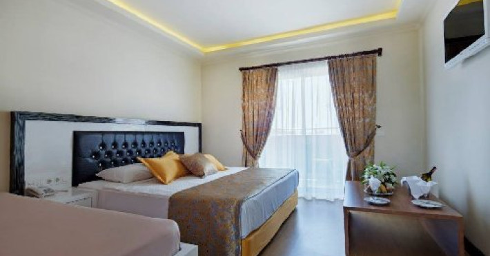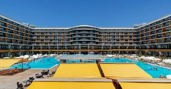 Construit in anul 2013, cu o suprafata de 14.100 mp, hotelul are 425 camere, repartizate astfel: 248 camere standard cu vedere la mare (suprafata 24 mp, capacitate maxima 3+1 pax); 76 camere standard (24 mp, capacitate maxima 3+1 pax); 62 camere family dublex cu vedere la mare (suprafata 30 mp, capacitate maxima 4 pax); 20 camere family dublex (suprafata 30 mp, capacitate maxima 4 pax); 8 camere family suite (suprafata 30 mp);2 camere family suite dublex (suprafata 60 mp); 4 camere Presidential Suite (suprafata 77 mp); 1 king suite (suprafata 140 mp); Localizare: pe malul marii, la 15 km de Alanya si la 100 km de aeroportul din Antalya. Dotari camera: minibar, televizor LCD, aer conditionat, telefon, seif, balcon, uscator de par, internet wi-fi. Facilitati hotel: restaurant principal, 4 restaurante a la carte (pescaresc, turcesc, mexican si italian), 7 baruri, piscina exterioara si piscina interioara ,piscina pentru copii, sala de jocuri, biliard, centru Spa, baie turceasca si sauna, mini club, loc de joaca pentru copii, magazin de suveniruri, animatie, tenis de masa, darts, voley pe plaja, jacuzzi, fitness, internet wi-fi. Servicii cu plata: sala de jocuri, internet cafe, servicii Spa extra (masaj, peeling, etc), doctor, coafor, rent-a-car, sporturi nautice motorizate, baby sitting, room service. Plaja: cu nisip si pietris si un dig. Plaja are o lungime de 100 m, sezlongurile si umbrela sunt gratuite. Alte informatii: animalele de companie nu sunt permise; in functie de conditiile meteorologice, programul de functionare a restaurantelor si barurilor se poate modifica. Hotelul isi rezerva dreptul de a modifica conceptul in timpul sezonului fara a anunta in prealabil aceste modificari.Datorita dinamicitatii domeniului disponibilitatea ofertelor se modifica de la un moment la altul. De aceea ofertele sunt valabile in limita locurilor disponibile. Agentia nu este responsabila pentru eventualele neconcordante care pot aparea intre informatiile privind tarifele si alte detalii din site si informatiile primite in agentie. In aceste cazuri vor avea prioritate, intotdeauna, informatiile primite in agentie.